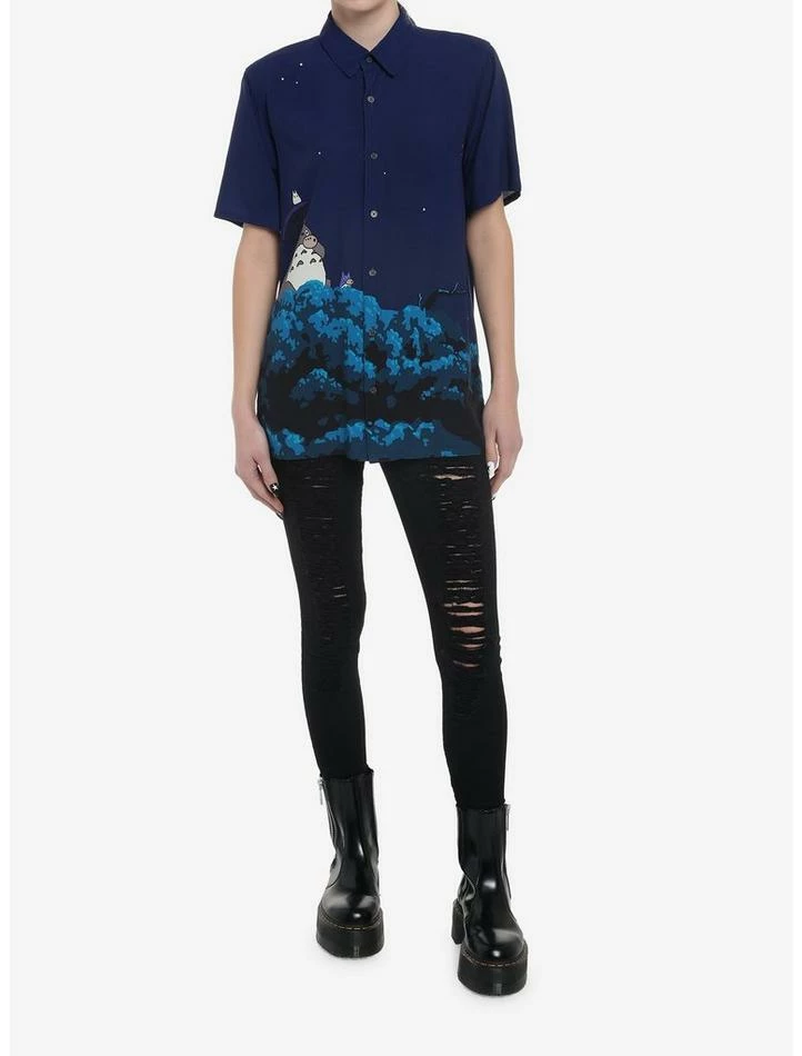 Best Sale π₯° Her Universe Studio Ghibli My Neighbor Totoro Night Sky Oversized π§ Girls Woven Button-Up π