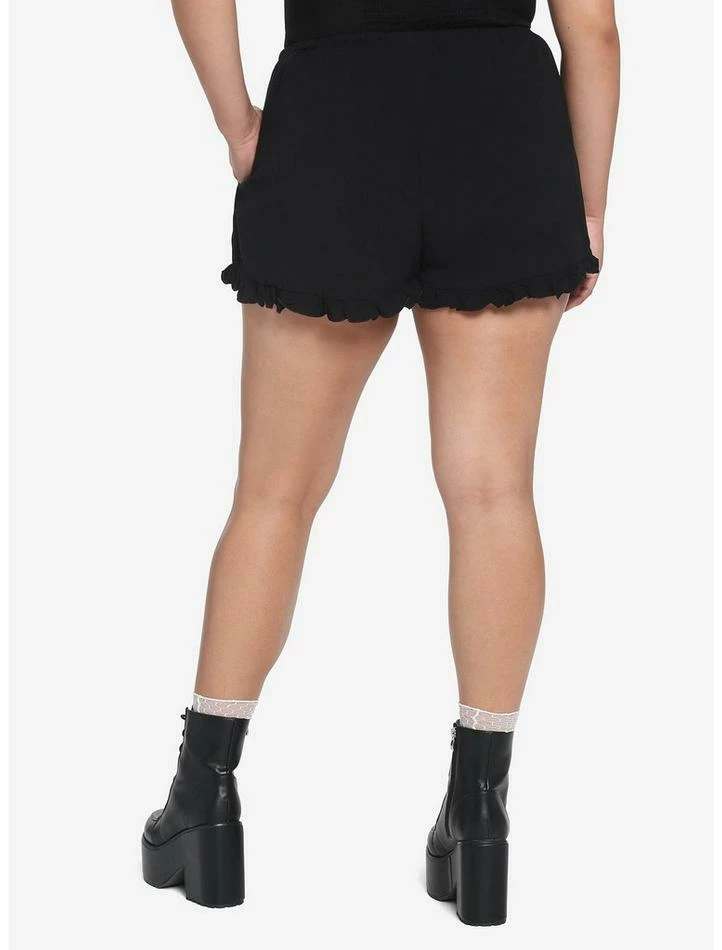 Channel some major forest spirit energy with these ruffle shorts! FromΒ Princess Mononoke, these black soft shorts have embroidered Kodama and foliage down the sides. Comes with pockets, ruffle lace detail at the leg openings and an elasticated drawstring waistband.