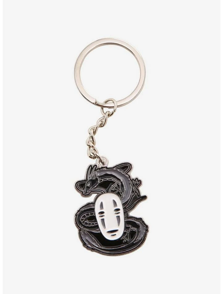 Heading to the Bathhouse? Bring No-Face along with this key chain! From Spirited Away, bring a bit of the Spirit Realm with you wherever you go with this enamel key chain, featuring a black & white No-Face and Haku in dragon form.