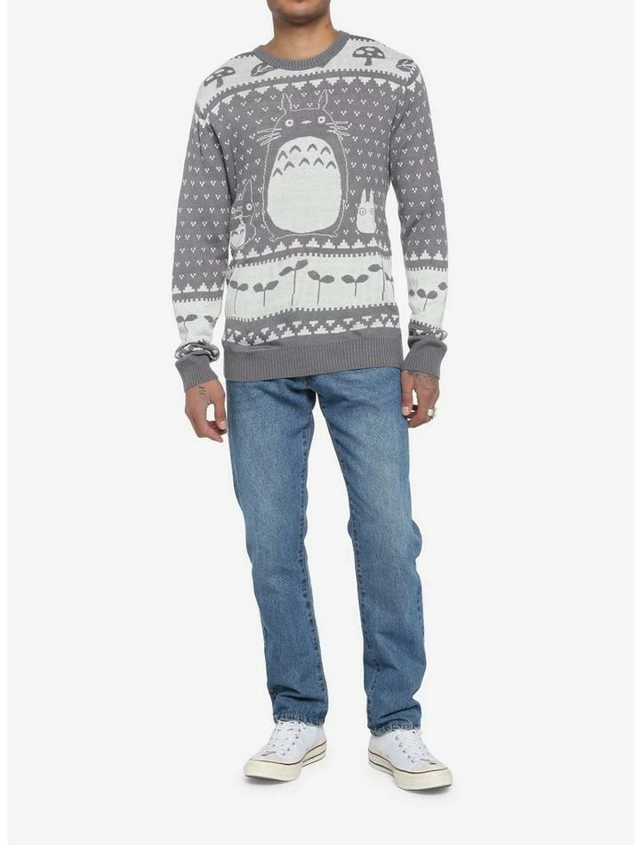 Deck the halls with your favorite forest spirits by your side! Whether you’re stepping into a winter wonderland or staying cozy by an open fire, these Totoros from My Neighbor Totoro are here to keep you warm. They’re featured front and center of this Fair Isle-inspired knit sweater, with plants and mushrooms around them.