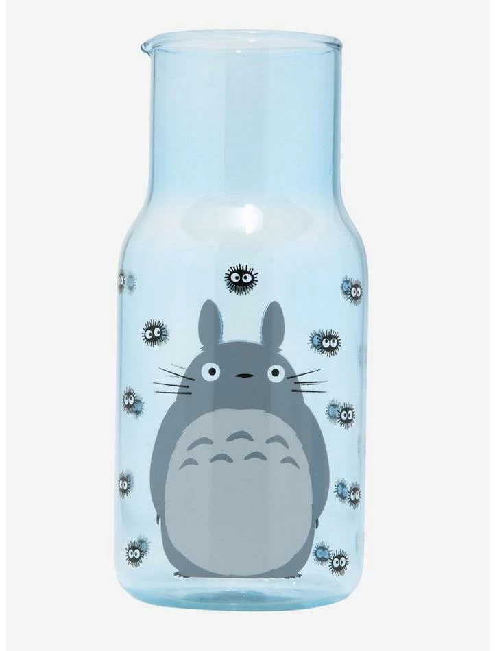 Stay hydrated with your favorite forest spirits! This carafe and cup set from My Neighbor Totoro has a blue tint and features Totoro and Soot Sprites.