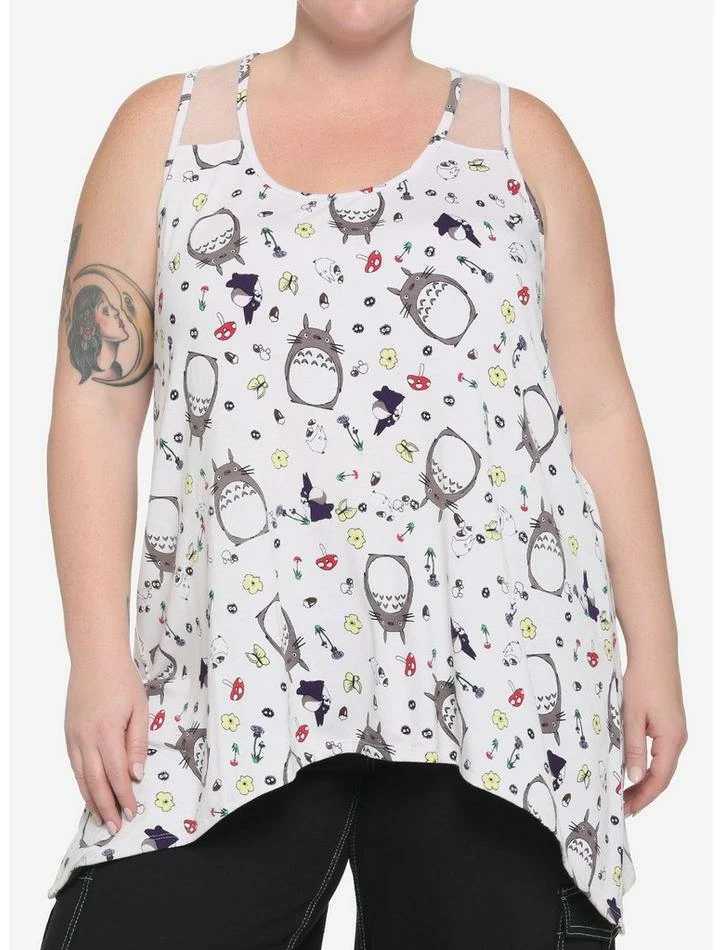 Buy ๐ Studio Ghibli My Neighbor Totoro Floral Mesh Panel ๐ง Girls Tank Top Plus Size ๐