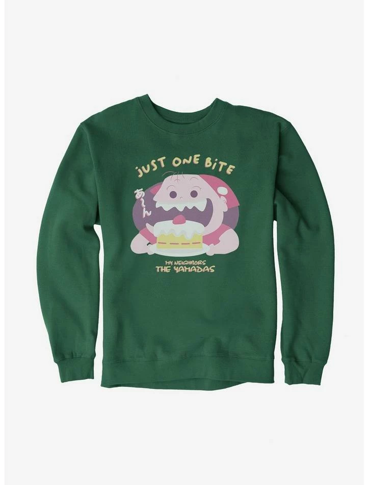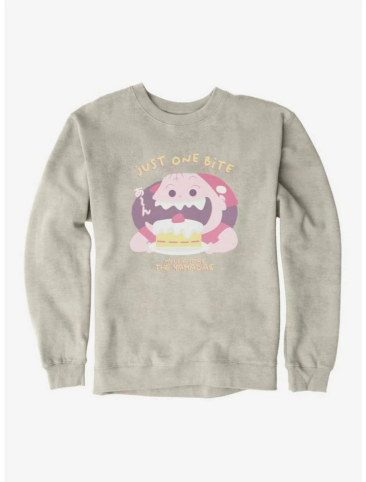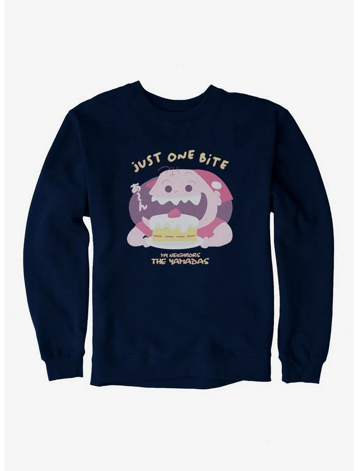 “Just one bite.” This sweatshirt — inspired by the Studio Ghibli film My Neighbors The Yamadas — features the character of Nonoko about to literally take the cake. *Chomp!*