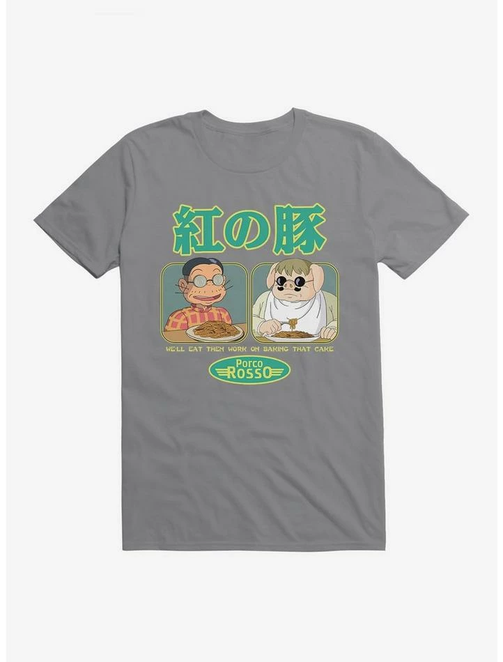 “We’ll eat then work on baking that cake.” This Studio Ghibli tee has a front screen inspired by a memorable scene in Porco Rosso where Porco eats pasta with Grandpa Piccolo.