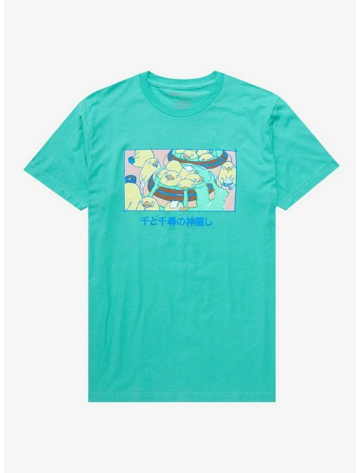 Look at all those chickens! That’s how we’re trying to be at the Bathhouse. Add more Spirited AwayΒ to your wardrobe with this teal tee, featuring a central panel print of the adorable chickens soaking in their own bath tubs.