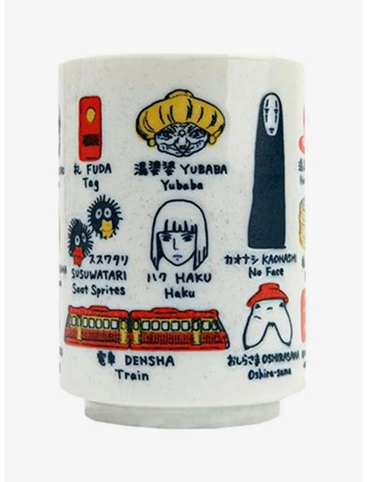 Get spirited away in the morning with this teacup featuring characters and icons from Spirited Away in Japanese and English.