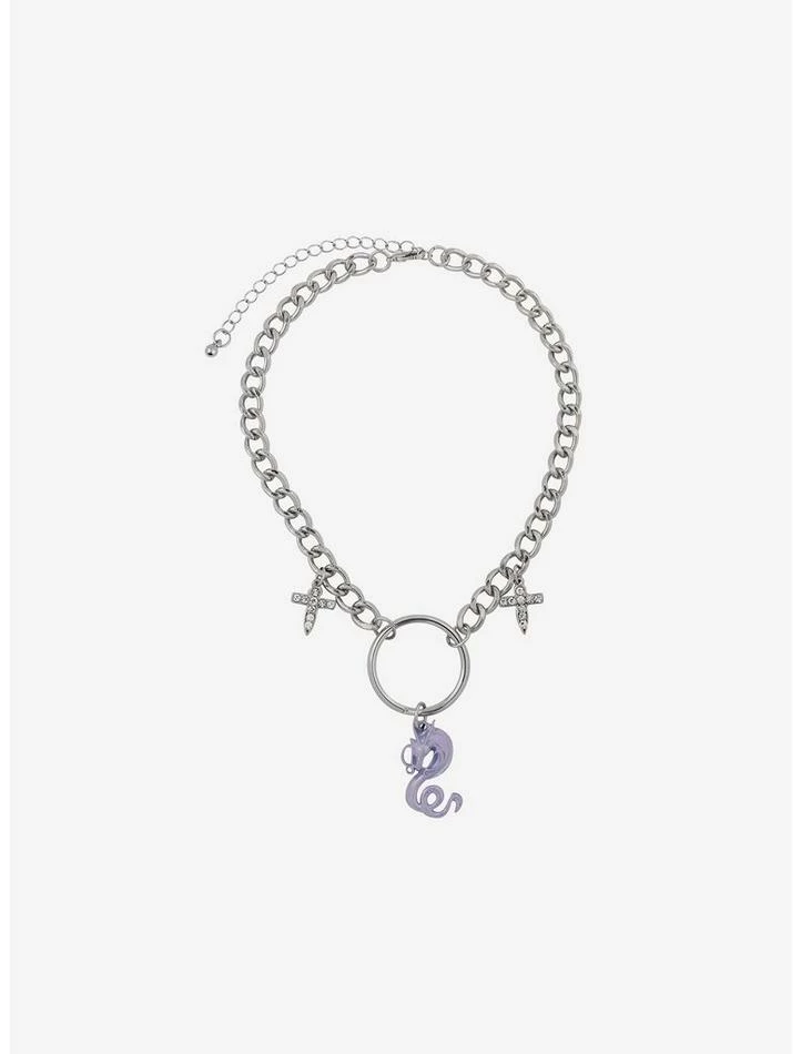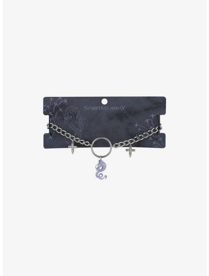 Step out of the Bathhouse in style with this charm necklace! FromΒ Spirited Away, this necklace is definitely Spirit Realm-approved. Features a chunky silver-tone chain with drop charms of a lilac Haku in dragon form surrounded by bejeweled Shikigami and a central O-ring.