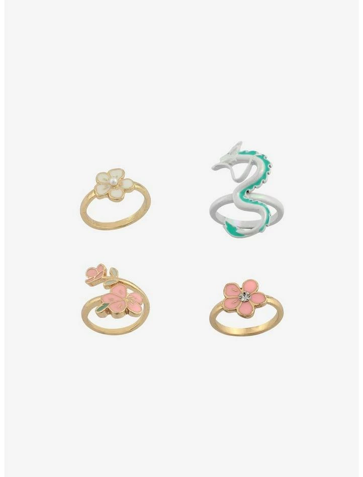 New accessories from Studio Ghibli are in full bloom! This set includes four rings with gold-tone and white bands and Spirited Away designs.