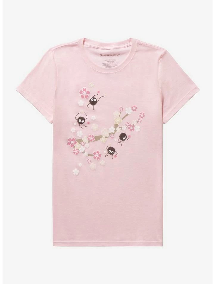 Spring into the new season with some fresh Studio Ghibli tees! Channel some of the Spirit Realm with this pink tee, featuring the Soot Sprites from Spirited Awayย playing among some cherry blossoms.